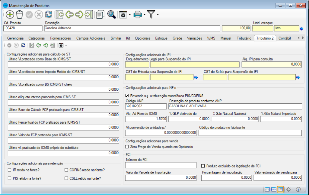 Foi adicionado o parâmetro “Tributação Monofásica sobre Combustíveis”.
