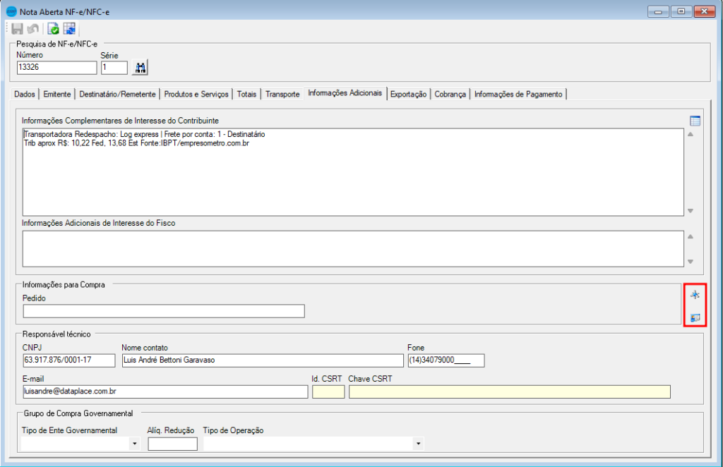 • Caminho: Nota Aberta NF-e → aba Informações Adicionais.