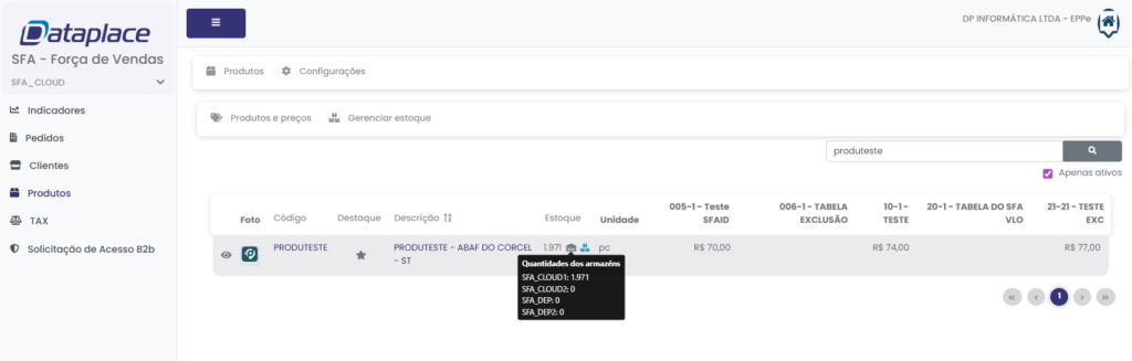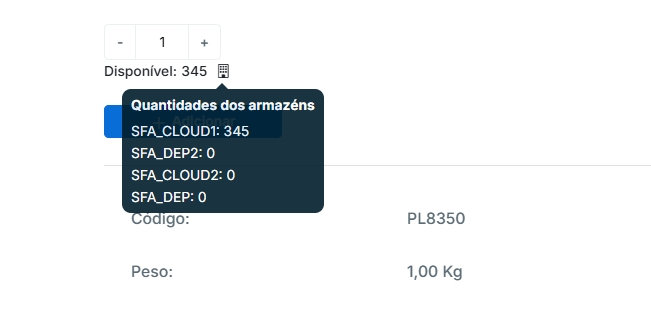 - Visualização, via tooltip, do estoque em todos os armazéns.
