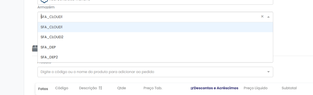 - Ao adicionar um pedido, o armazém padrão é carregado automaticamente, é possível alterar o armazém enquanto o pedido não estiver confirmado.