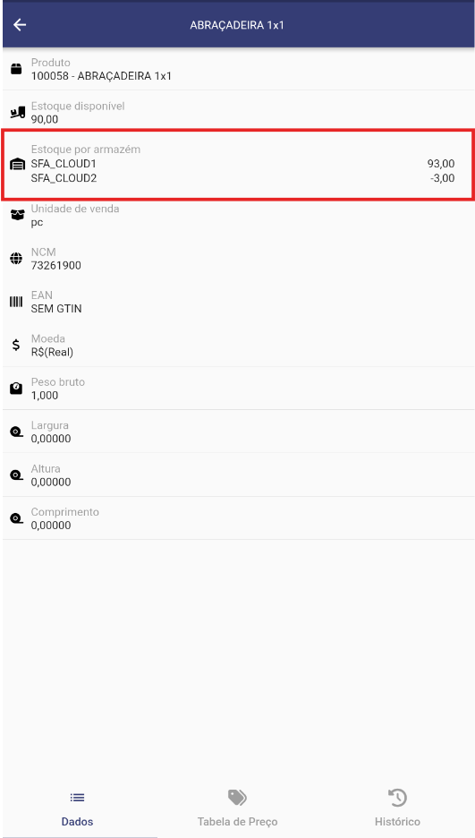 - Estoque de produtos, comissões e títulos financeiros em aberto passam a ser enviados por armazém.