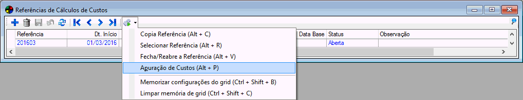 Uma vez que todos os cadastros foram realizados, para fazer o cálculo da tarifa da UP, o primeiro passo é acessar a janela de referências de cálculo de custo e realizar a apuração de custos da referência.