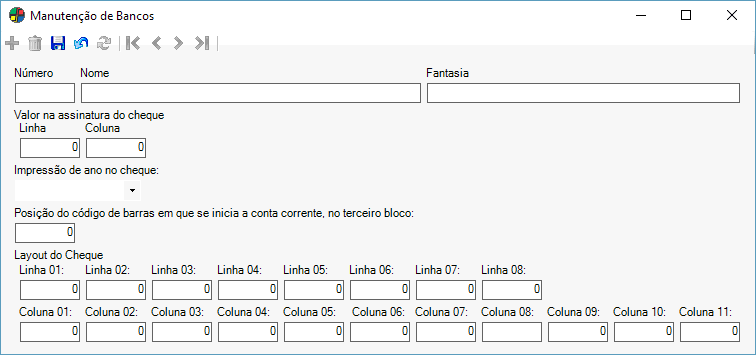 Neste campo informe o número correspondente aos cheques emitidos pela empresa, estes serão impressos sequencialmente.