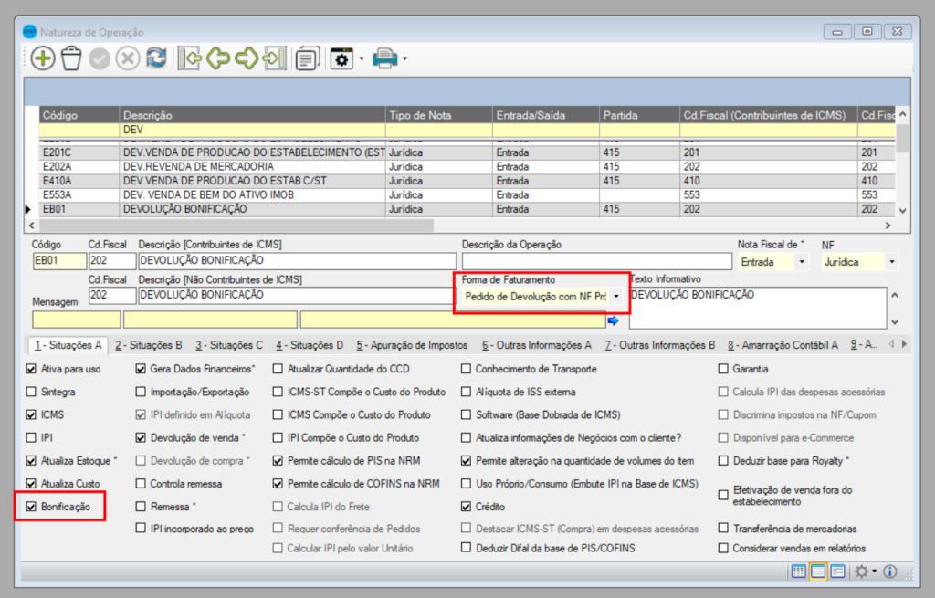 Nova regra na geração de crédito para devoluções com Natureza de Operação de Bonificação
