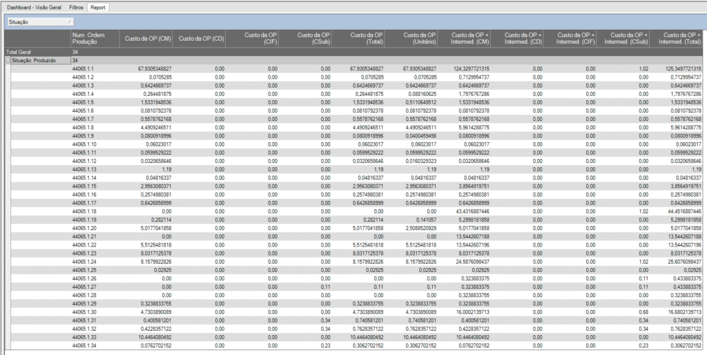 - Conteúdo das Novas Colunas: As colunas referem-se aos Custos Totais da OP, incluindo: