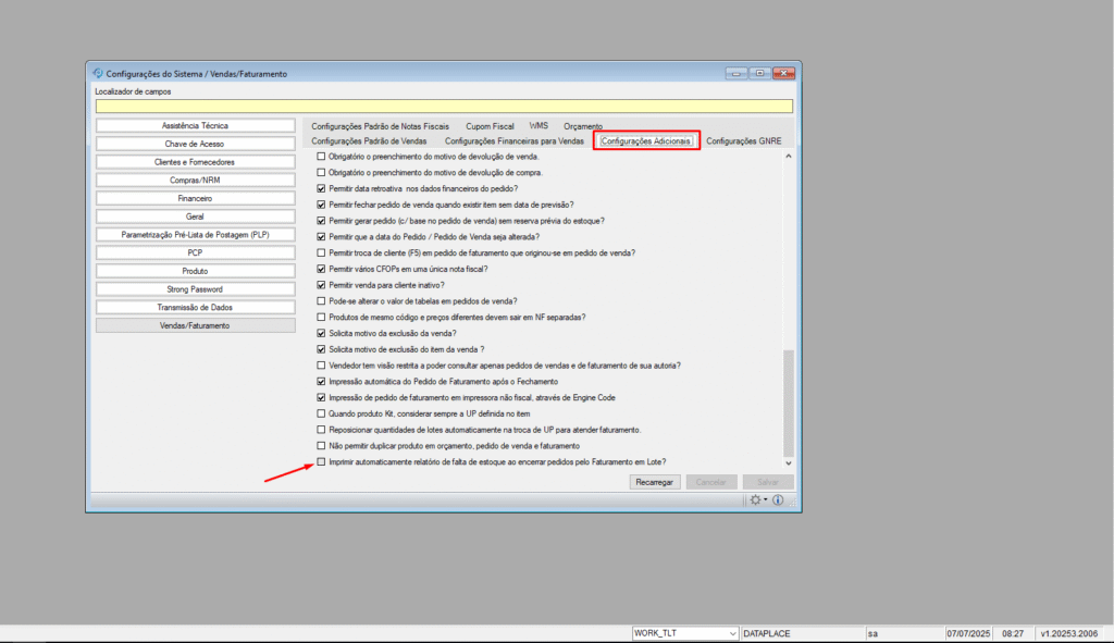 Além disso, foi adicionada no Configurador Geral, link Vendas/Faturamento >> aba Configurações Adicionais, a opção: