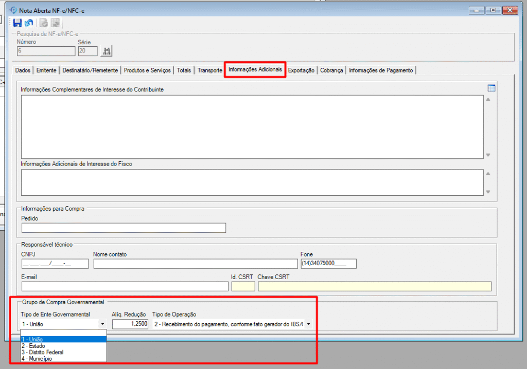 Em Nota Fiscal Eletrônica >> Nota Aberta NF-e/NFC-e >> Aba Informações Adicionais: