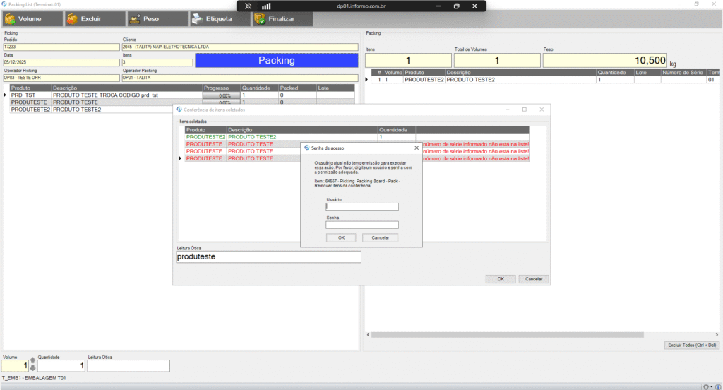 Para reforçar a segurança operacional, a tela de conferência que antes era parte apenas do processo de picking, foi implementada também para o processo de packing e junto a isso foram criados dois novos Itens de Segurança (IS):