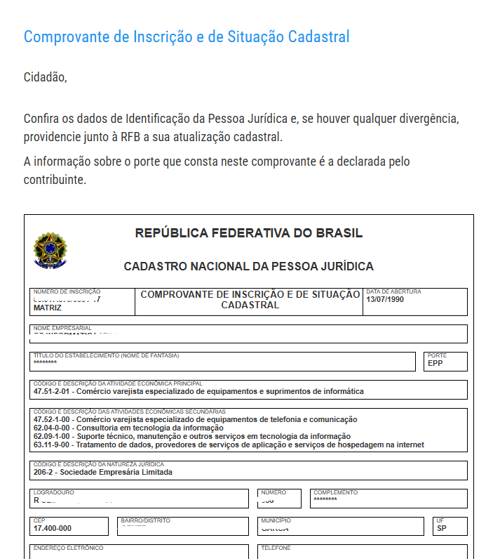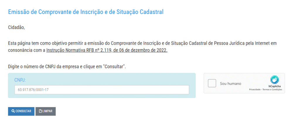 Emitir Comprovante de Inscrição e de Situação Cadastral