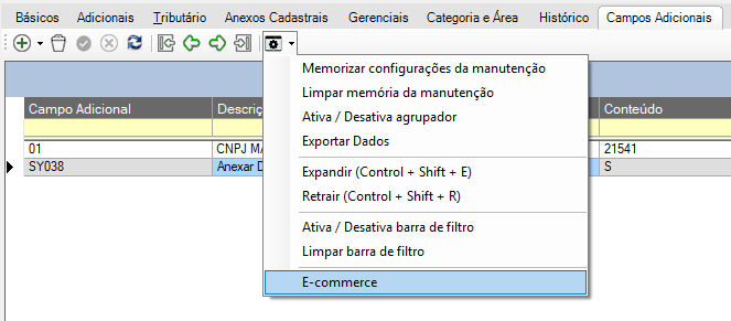 Os campos adicionais devem ser previamente cadastrados na manutenção Campos Adicionais, localizada em: Administração >> Setup da Aplicação >> Parceiros de Negócios >> Campos Adicionais.