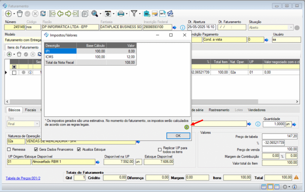 - A simulação não altera os valores reais calculados pelo sistema nas operações fiscais; sua finalidade é exclusivamente demonstrativa.