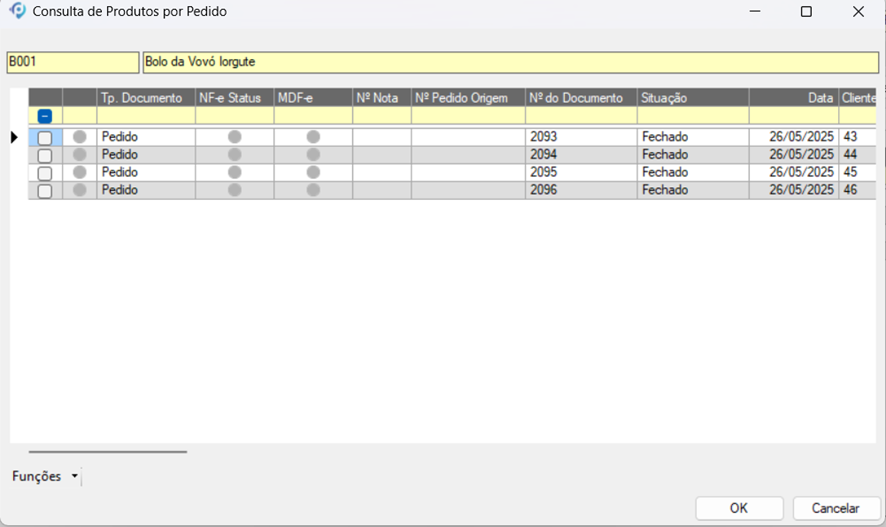 Será exibida uma nova janela com a lista de pedidos vinculados ao roteiro selecionado.